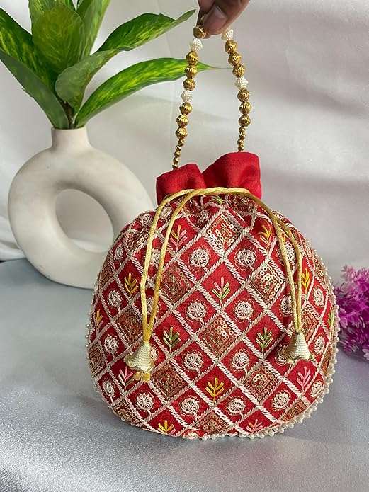 The best return gift which is given to your loved ones in any occasion or celebration. This Potli Bags are splendid for Wedding and Festive parties wherein it will best accomplish t your Designer Saree, Lenhga, Kurti or any other dress. The shagun potli bag with designer look will make you happy after having such collection.