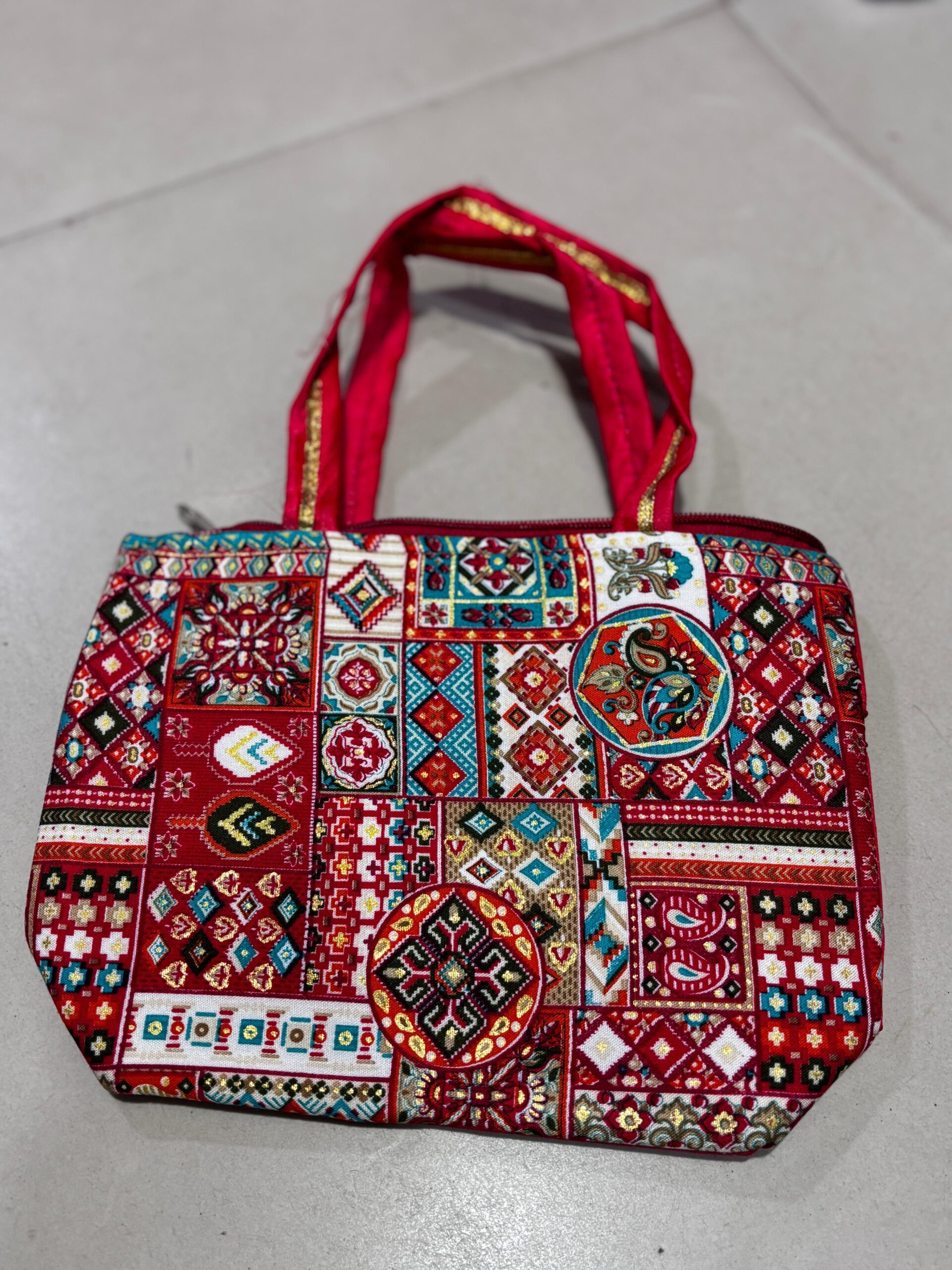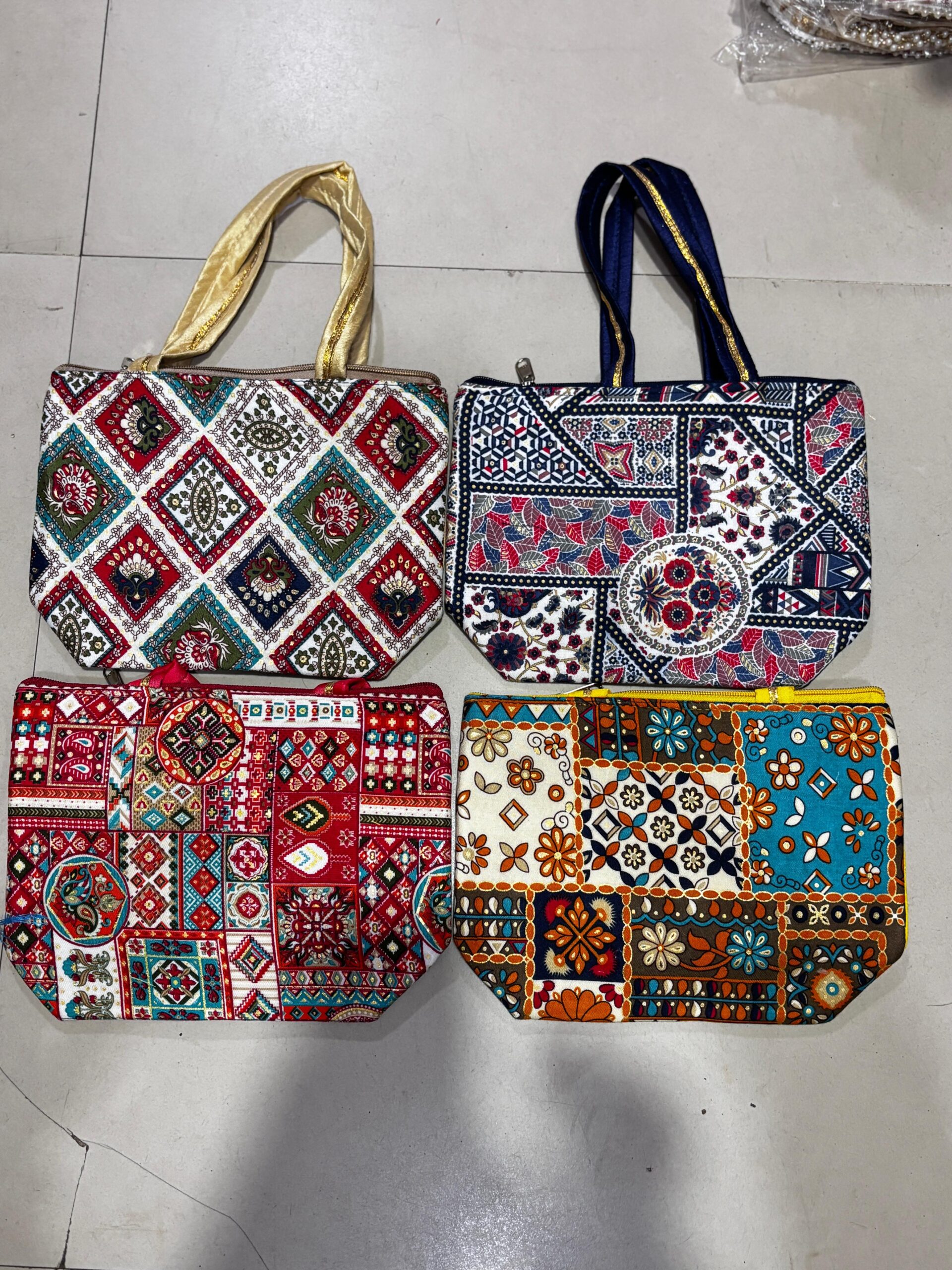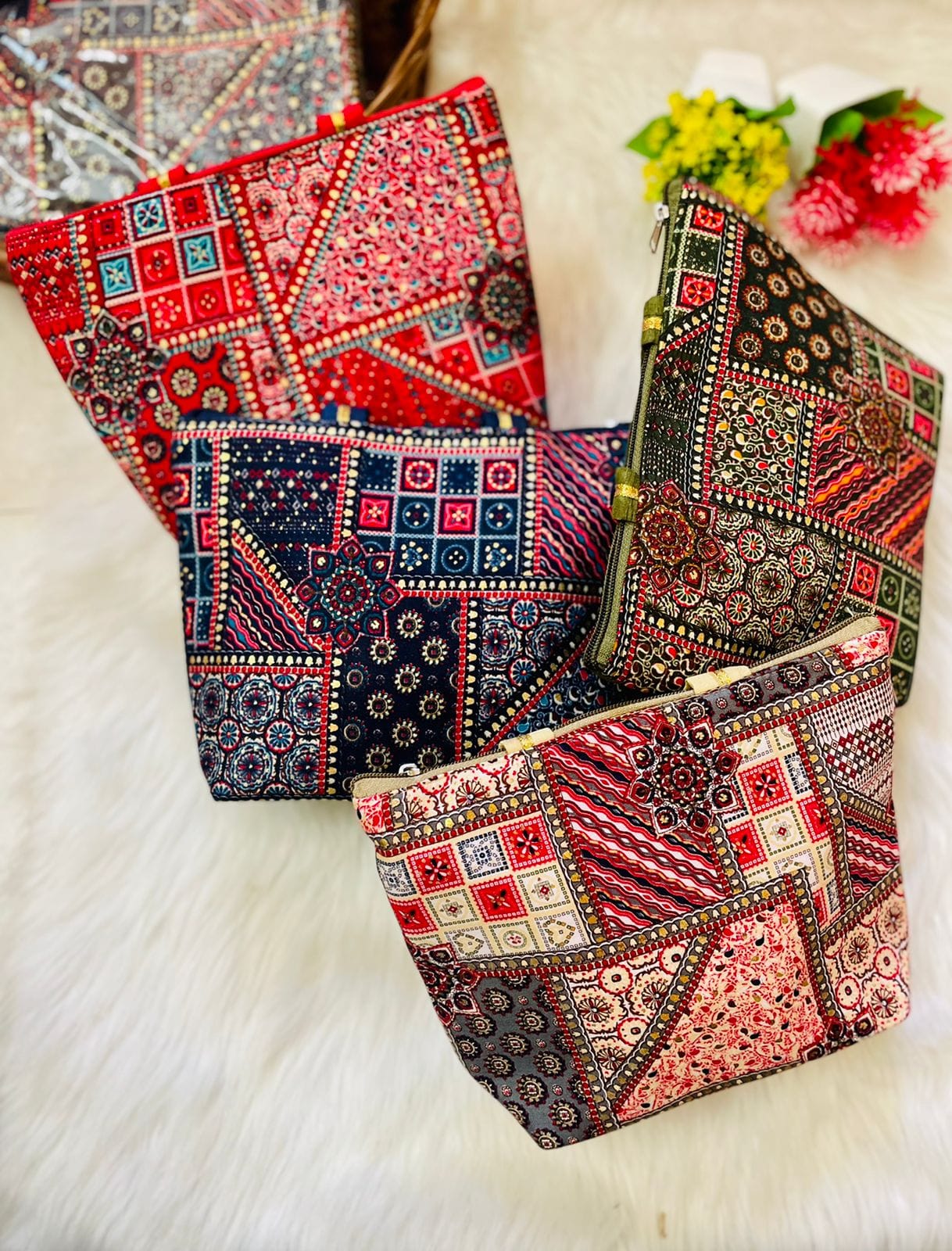 Ikkat print puja bags.