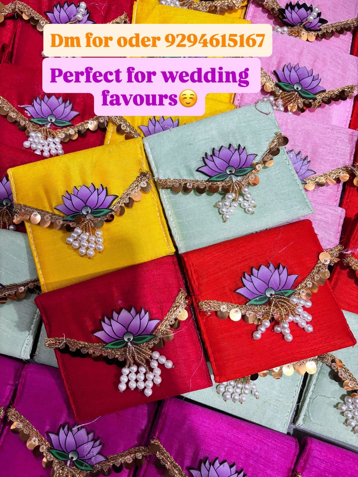 Elegant Lotus Coin Pouches – Assorted Colors | Designer Shagun & Return Gift Bags .