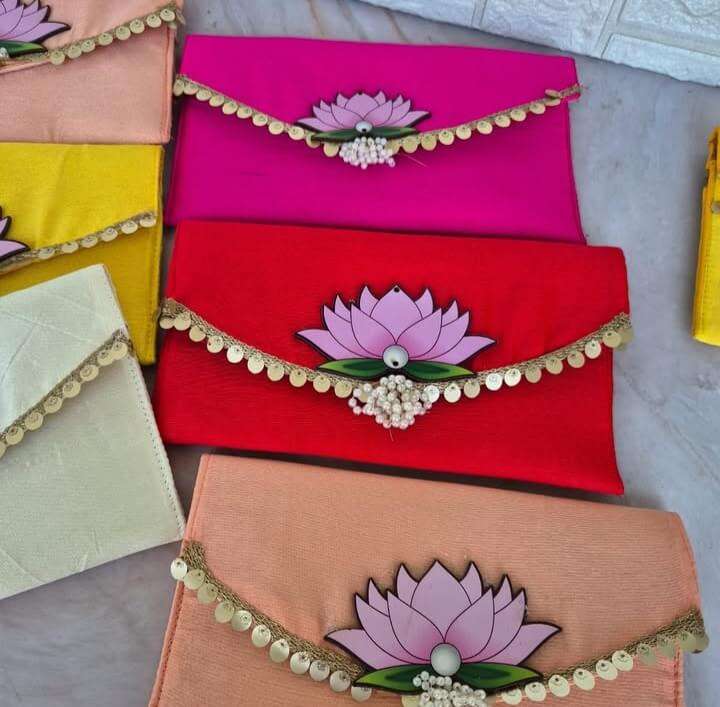 Designer clutches is a stylish, eco-friendly, and versatile option for gifting money, invitations, or small keepsakes. Jute’s natural texture and earthy appeal combined with designer elements make these envelopes perfect for weddings, festive occasions, and celebrations.