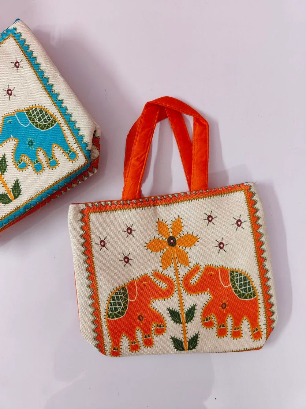 Pooja Bags with Ethnic Prints | Elephant Design Jute Handbag