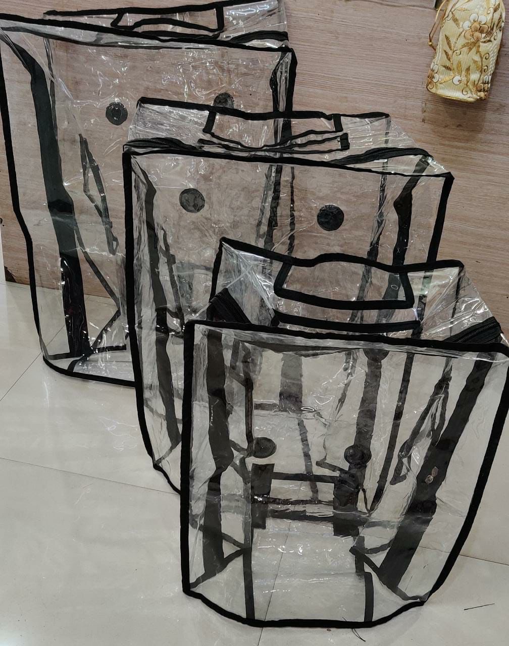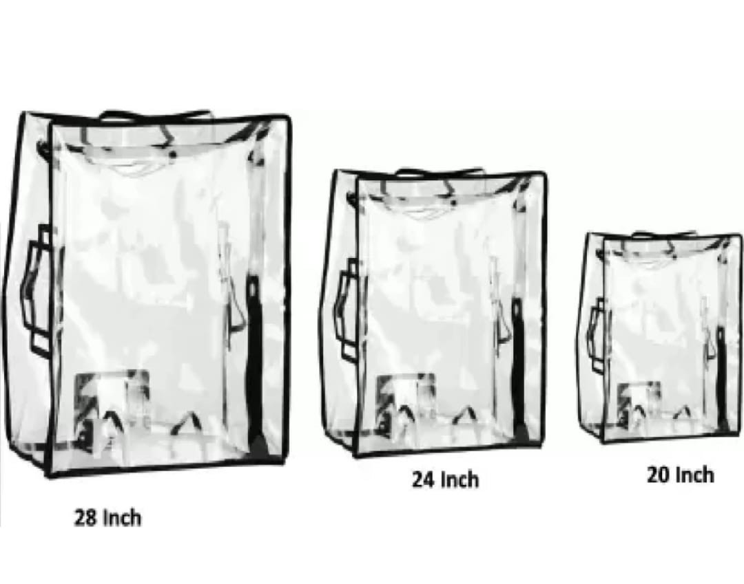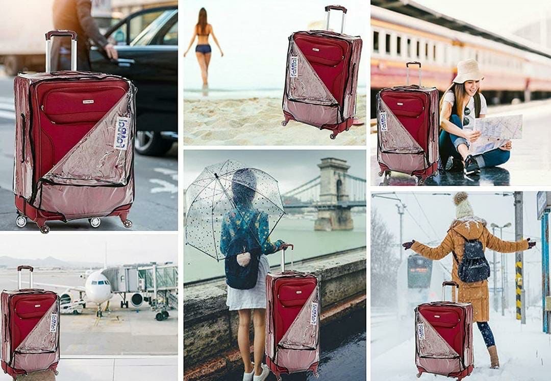 Super Quality PVC luggage cover (Transparent)This clear luggage cover prevents your luggage from being scratched, and stained. It can help you to recognize your beloved luggage in the crowded airport The suitcase protector is made of high quality PVC material, reusable, and offer full protection to your luggage With durable velcro on the bottom, easy press and install Luggage Cover (do not include any suitcase)They prevent water damage that can occur when you accidentally spill liquid on your luggage, which can seep through airline locks or come in contact with delicate electronics.