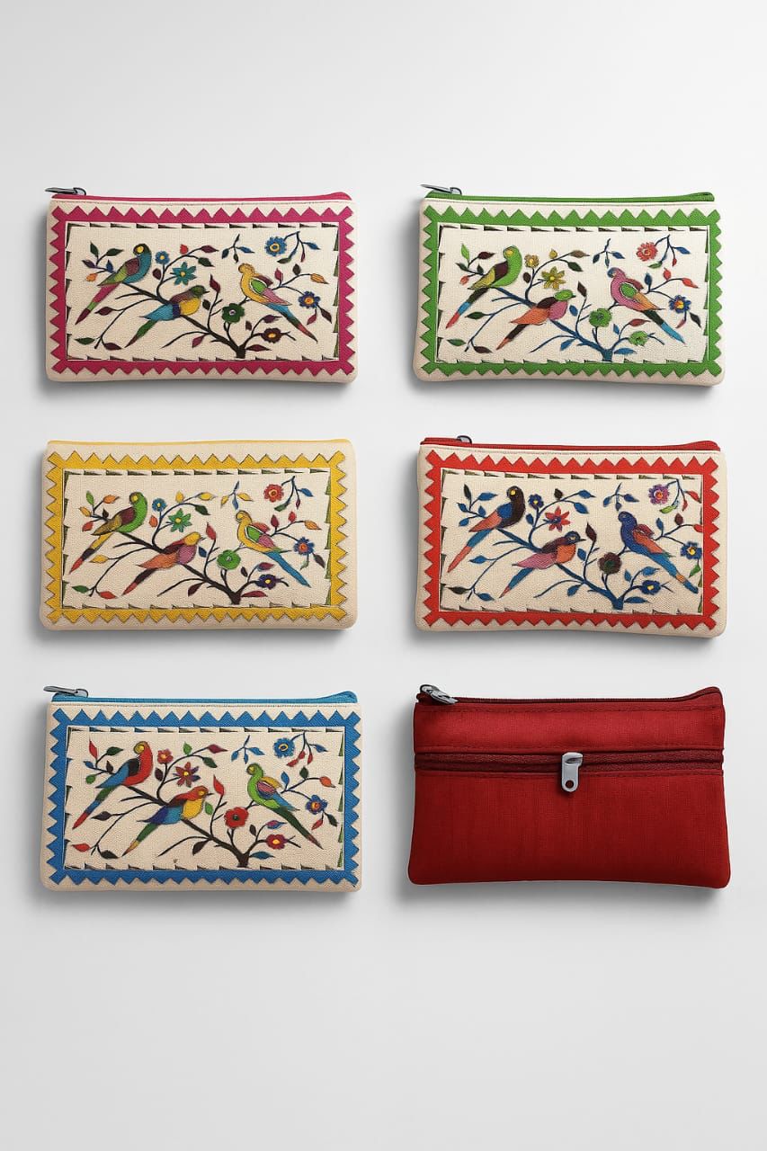 Traditional Bird Design Jute Pouches for Elegant Gifting